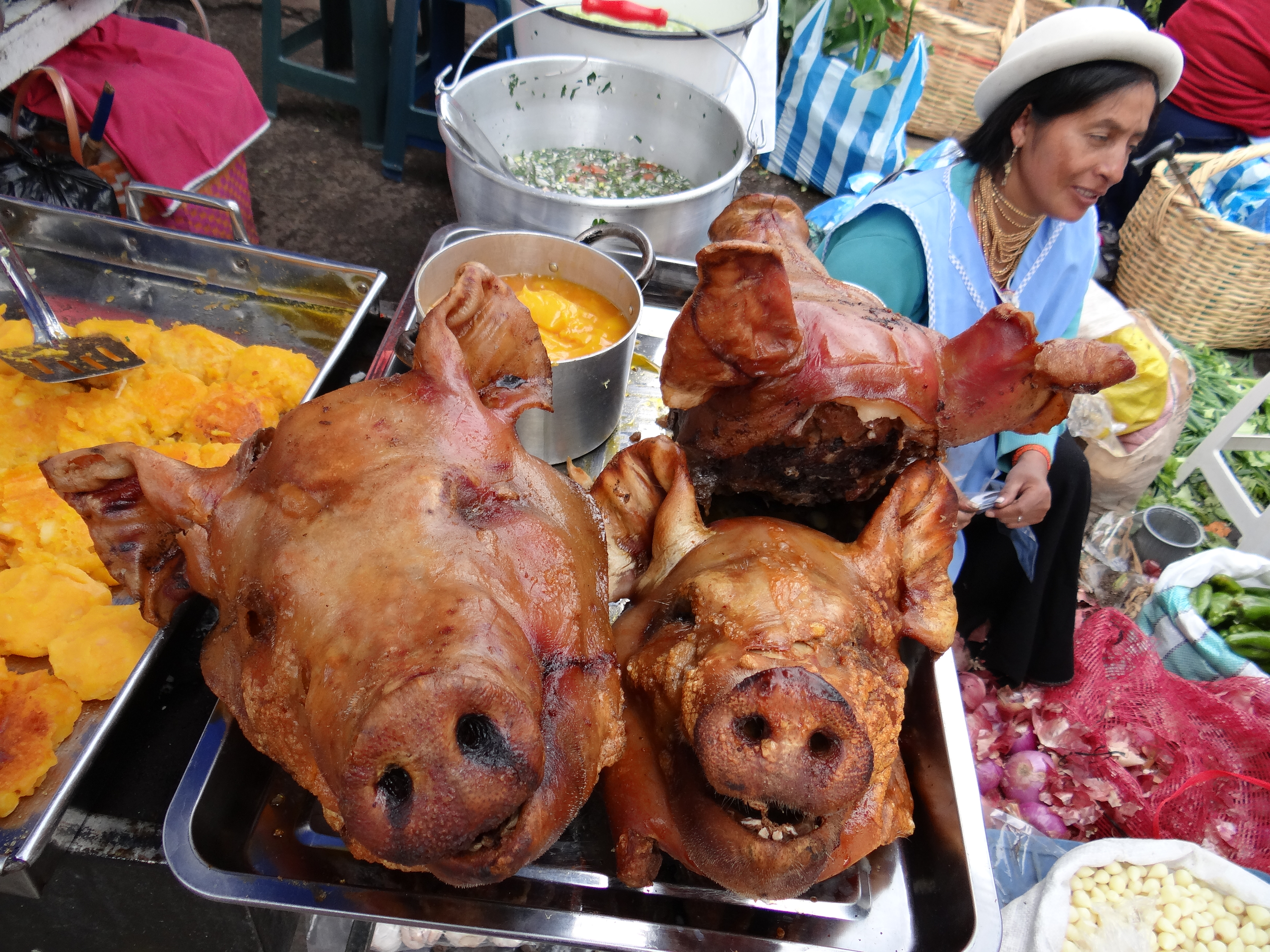 A cambio de 0,25 $ y media hora en bus desde Quito vas a vivir una experiencia única para los sentidos. El centro se cierra para los coches y cientos de puestos de todo tipo se instalan en las calles.