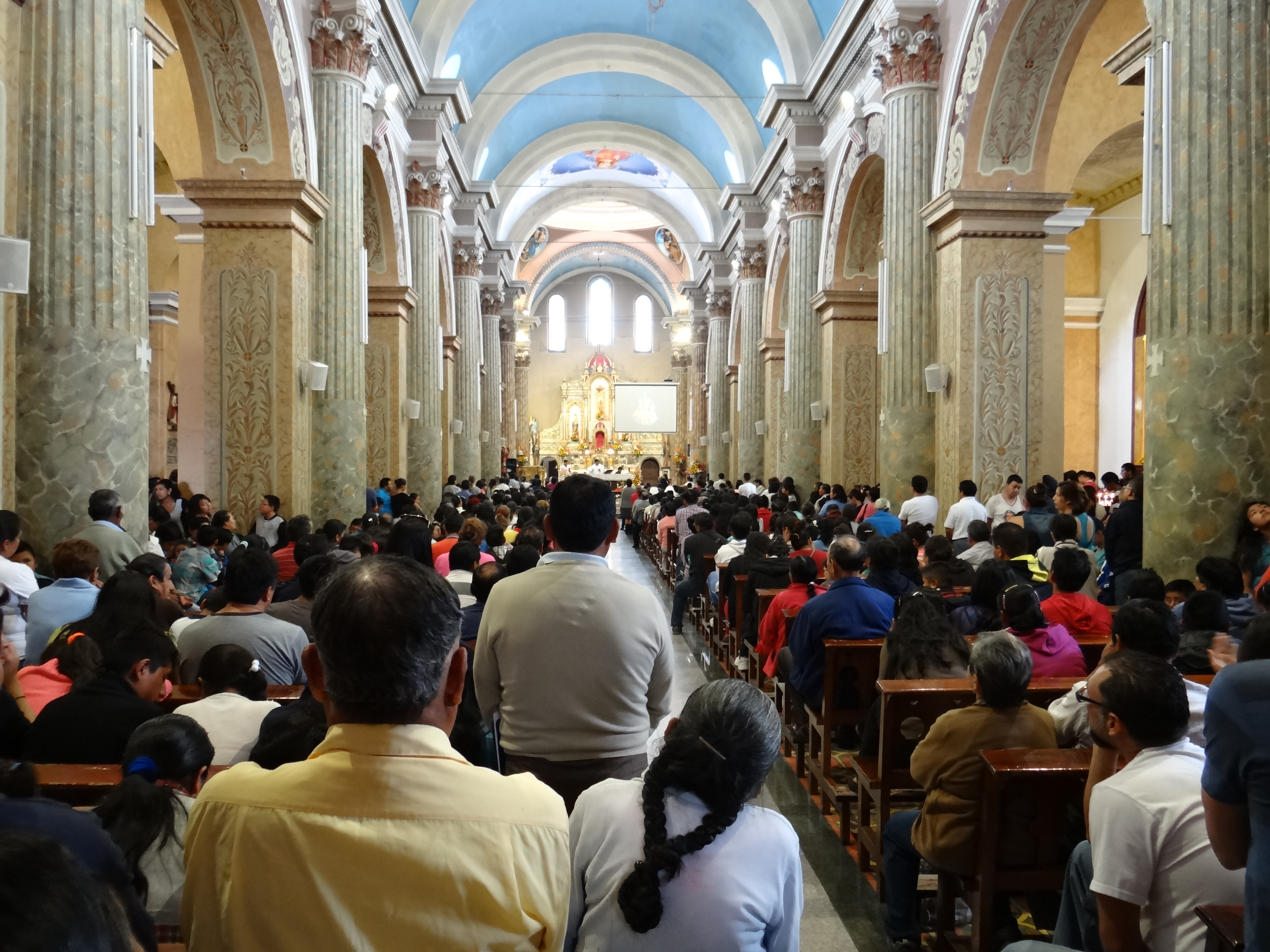 Mientras, toca oir misa. Es impresionante en Ecuador como se viven las misas, es tremendo el fervor de esta gente, llenaban completamente el aforo de la iglesia y todavía se quedó gente fuera….