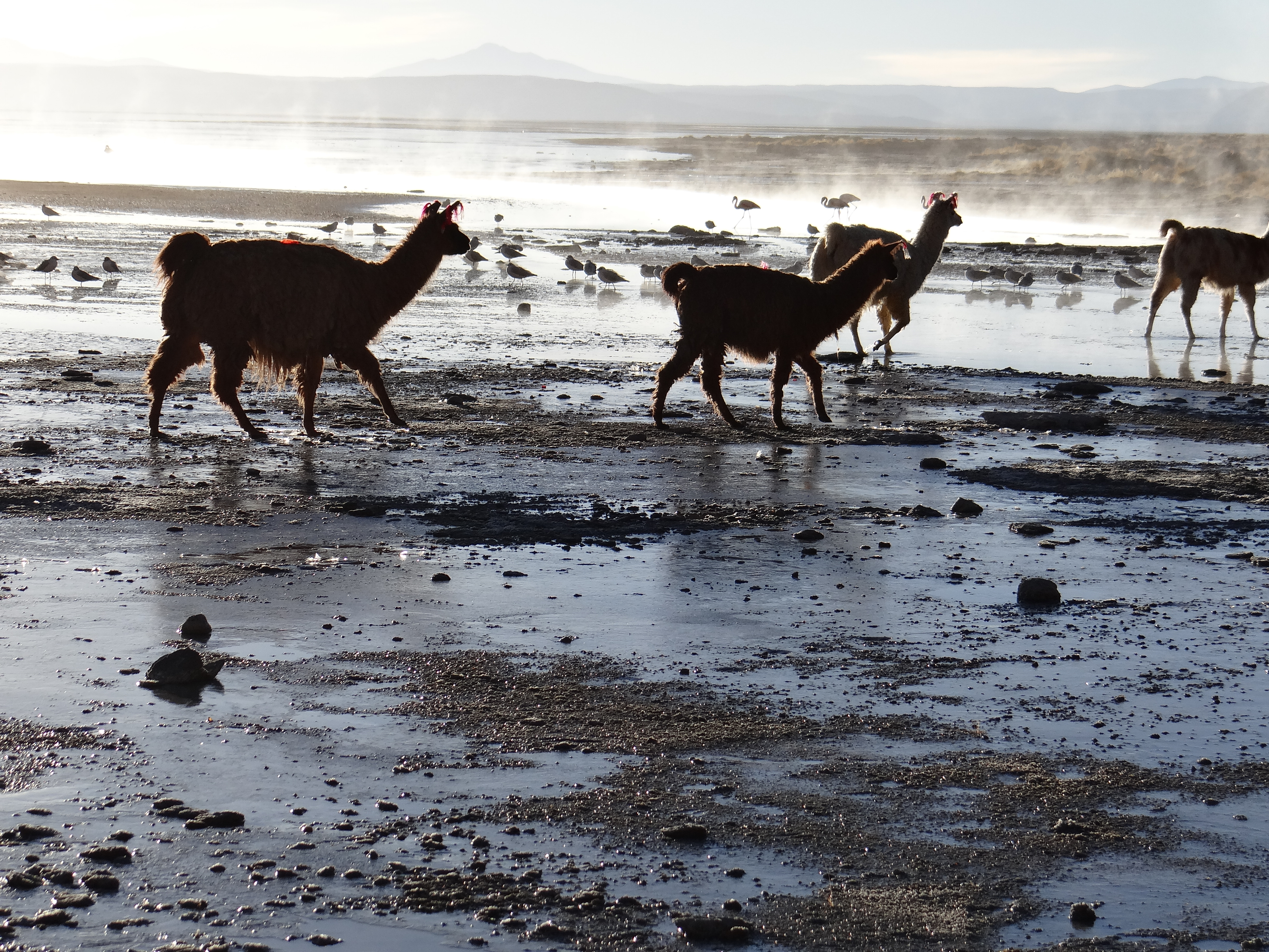 Para hacer honor a la verdad el autor del blog estaba tan pelado de frío que se rajó en el último momento y no se metió dentro 😥 Para colmo en mi intento de perseguir a un rebaño de vicuñas que pasaba por allí me metí en todos los charcos imaginables quedándome todavía más helado que antes 😰