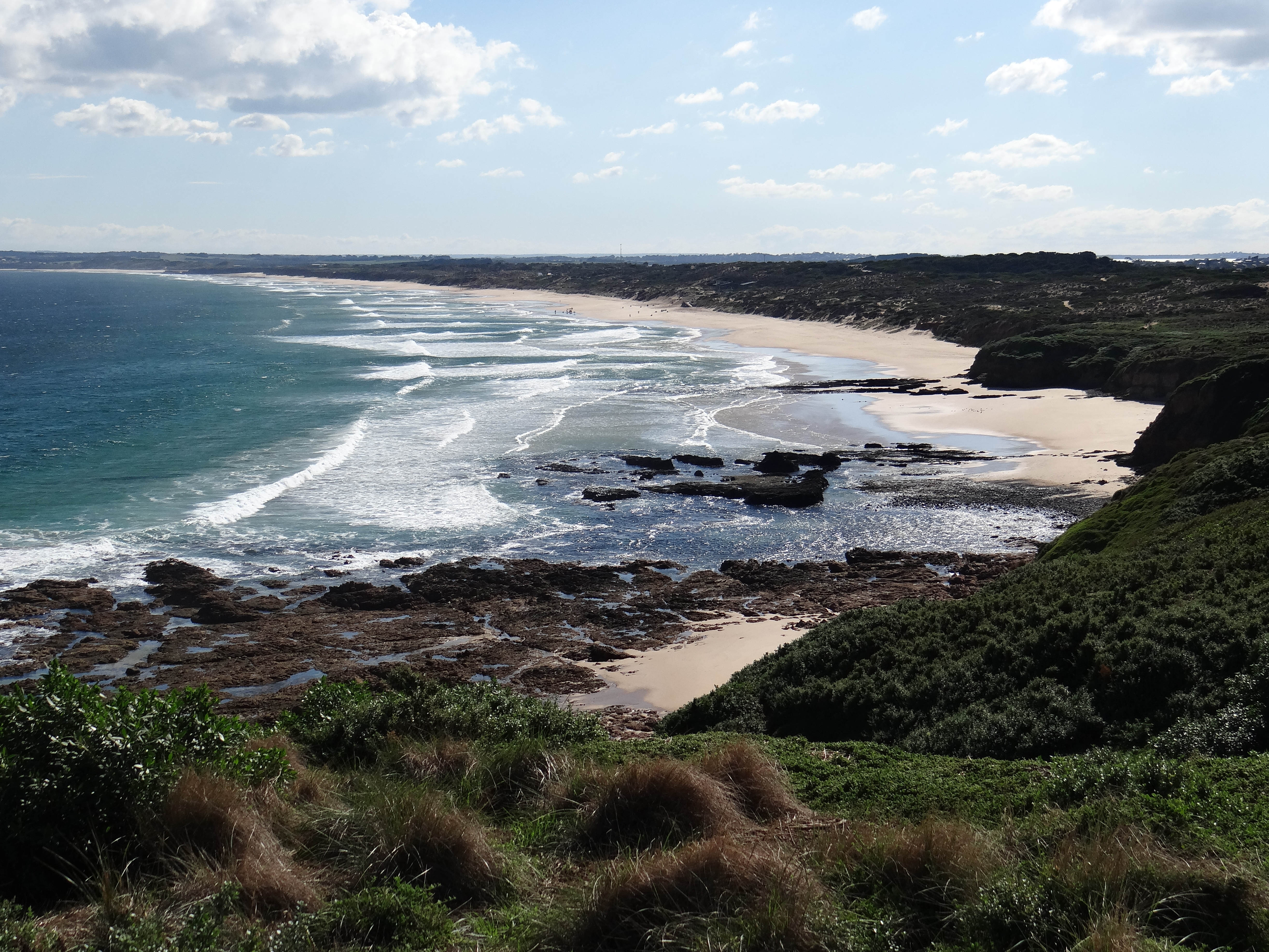 Al sur , casi enfrente de la Churchill Island , nos encontramos con el Cabo Woolamai. A su entrada hay una enorme lengua de arena habitada por la fauna más característica de Australia : los surferos