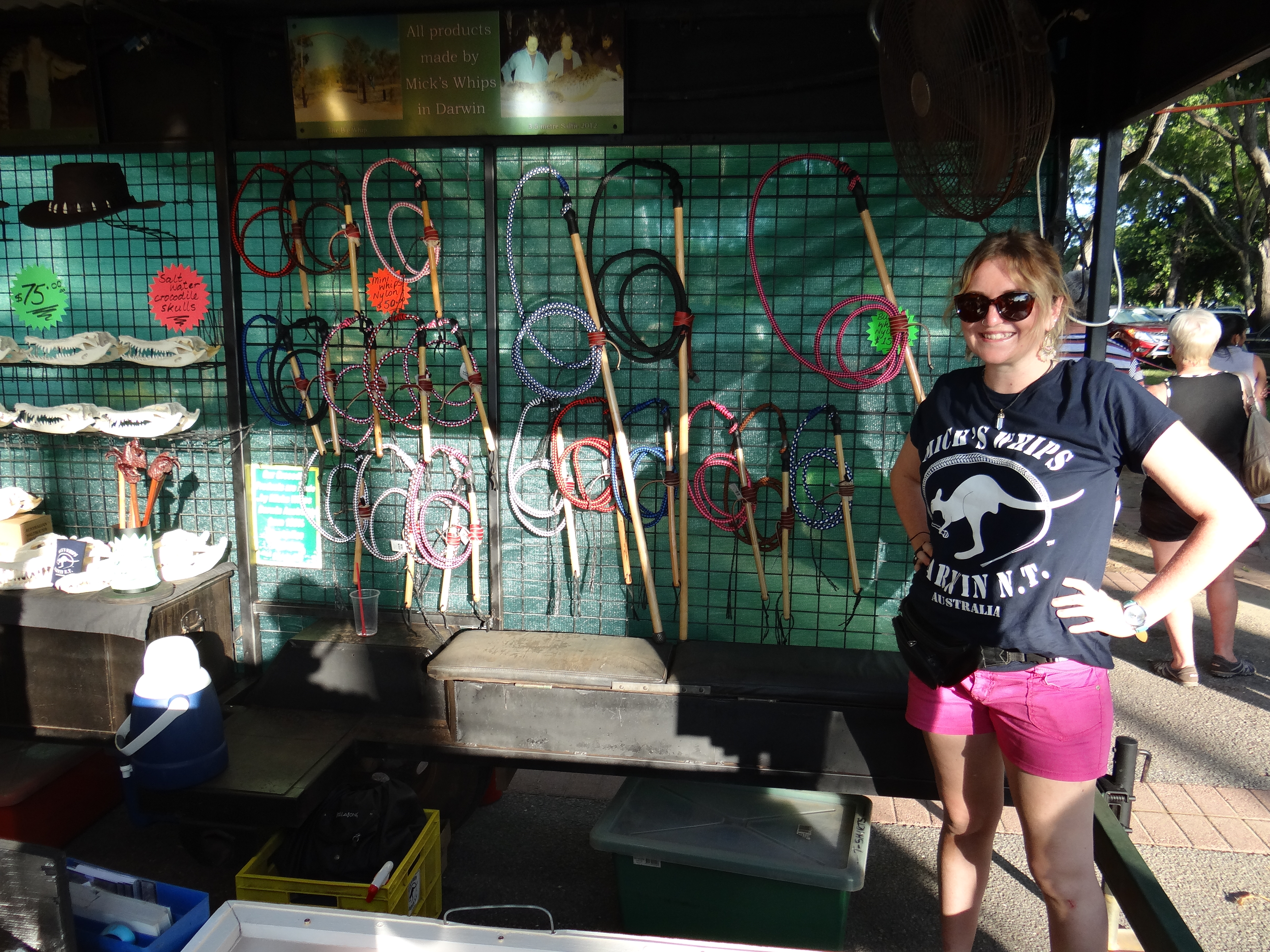 Al anochecer se monta un mercadillo en la playa de Mindil con cosas bastante curiosas : desde un puestecillo donde venden didyeridus hasta otro donde ofrecen todo tipo de látigos , con demostración de su dueño incluída