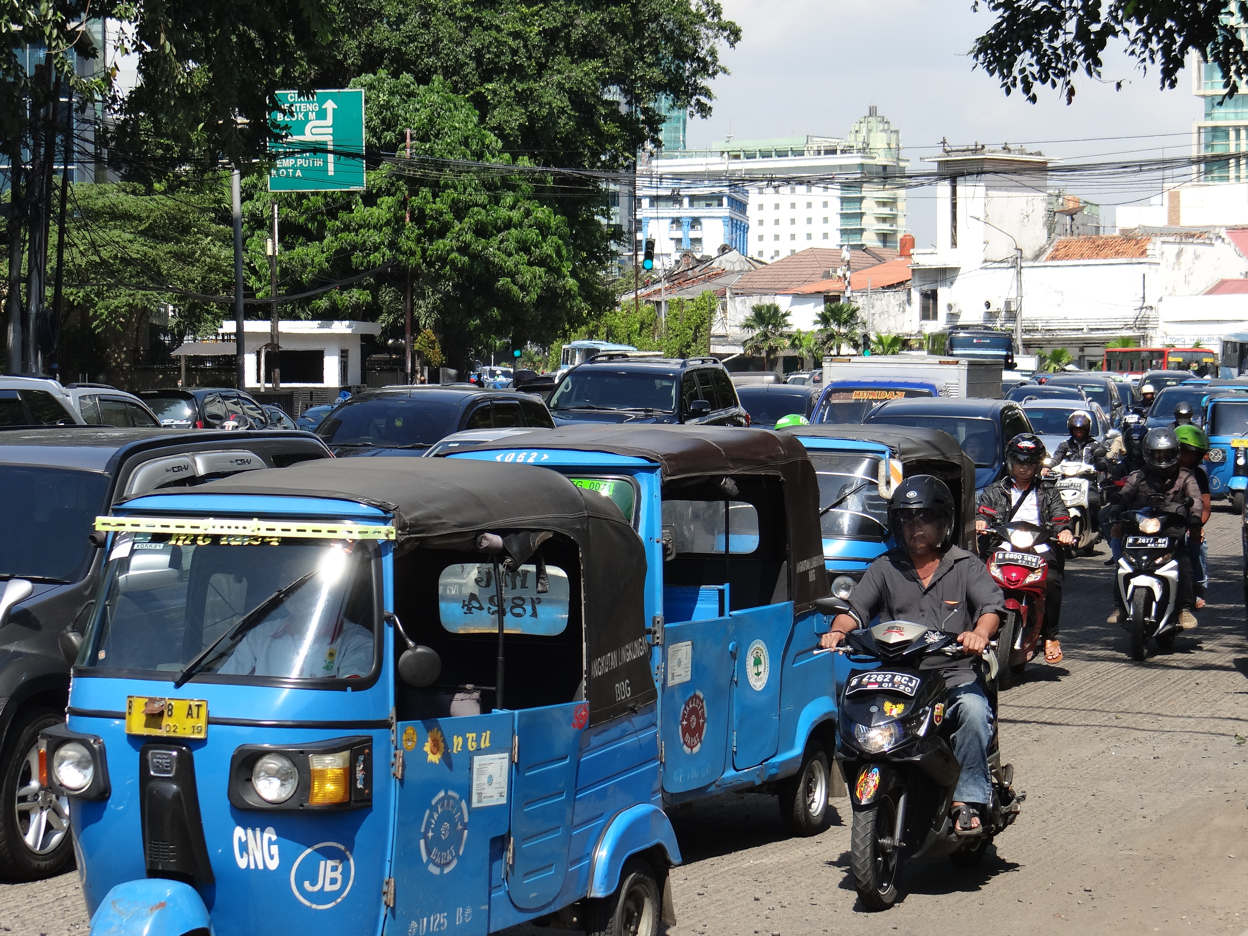 Los semaforos no tienen más utilidad que un arbol de Navidad y los pasos de cebra son simples manchas blancas en la calzada….alguno pensará que Hanoi o Palermo son iguales pero Yakarta sobrepasa todo lo conocido: los sitios turísticos del centro estan «rodeados» de carreteras anchísimas (tres o cuatro carriles) y atravesarlas es toda una aventura 😅