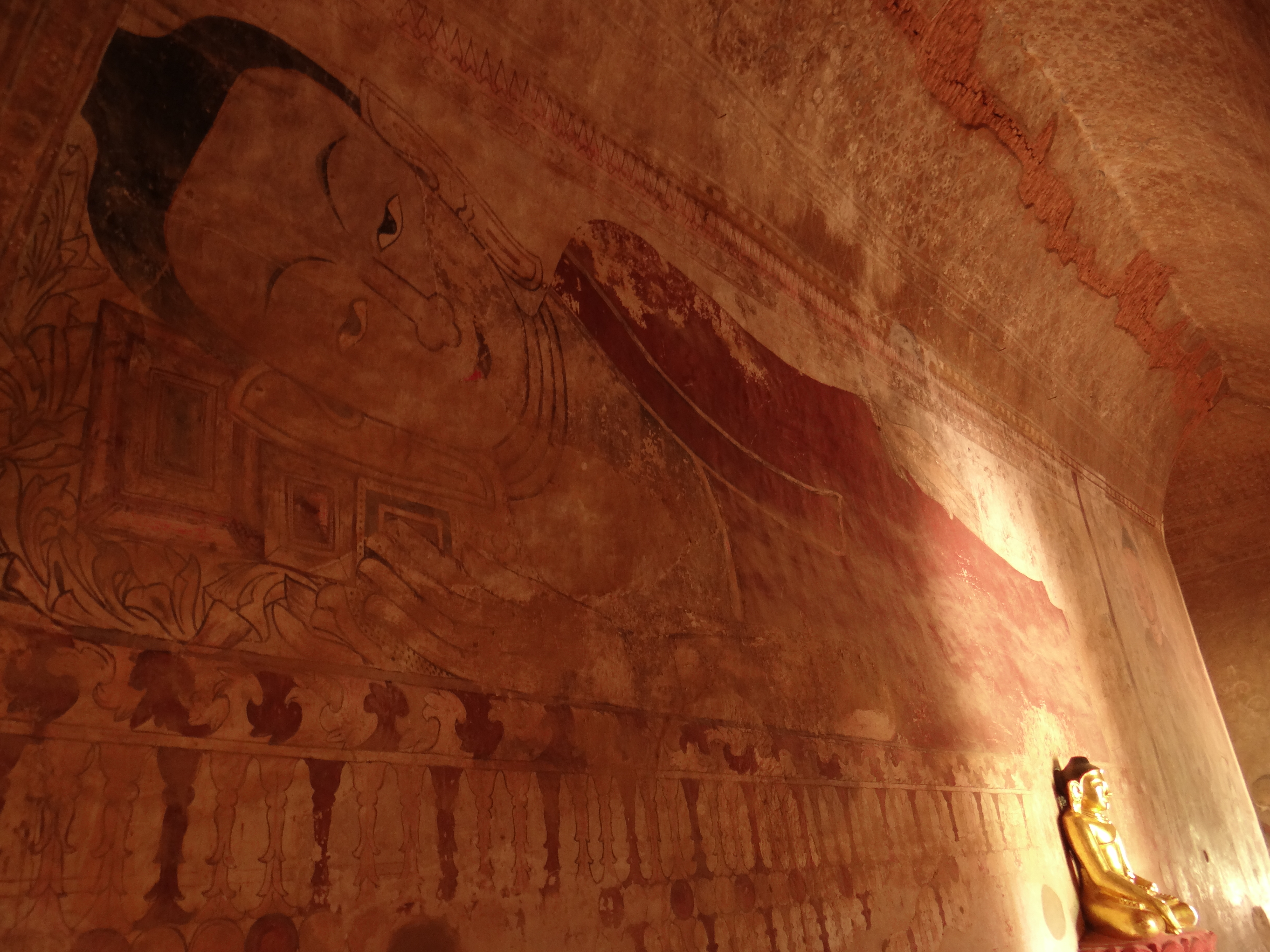 ¿Y porqué «cave» (cueva)? Porque la mitad del edificio de ladrillo está enterrado en el subsuelo y en esas oscuras cámaras los artistas birmanos dieron rienda suelta a su arte