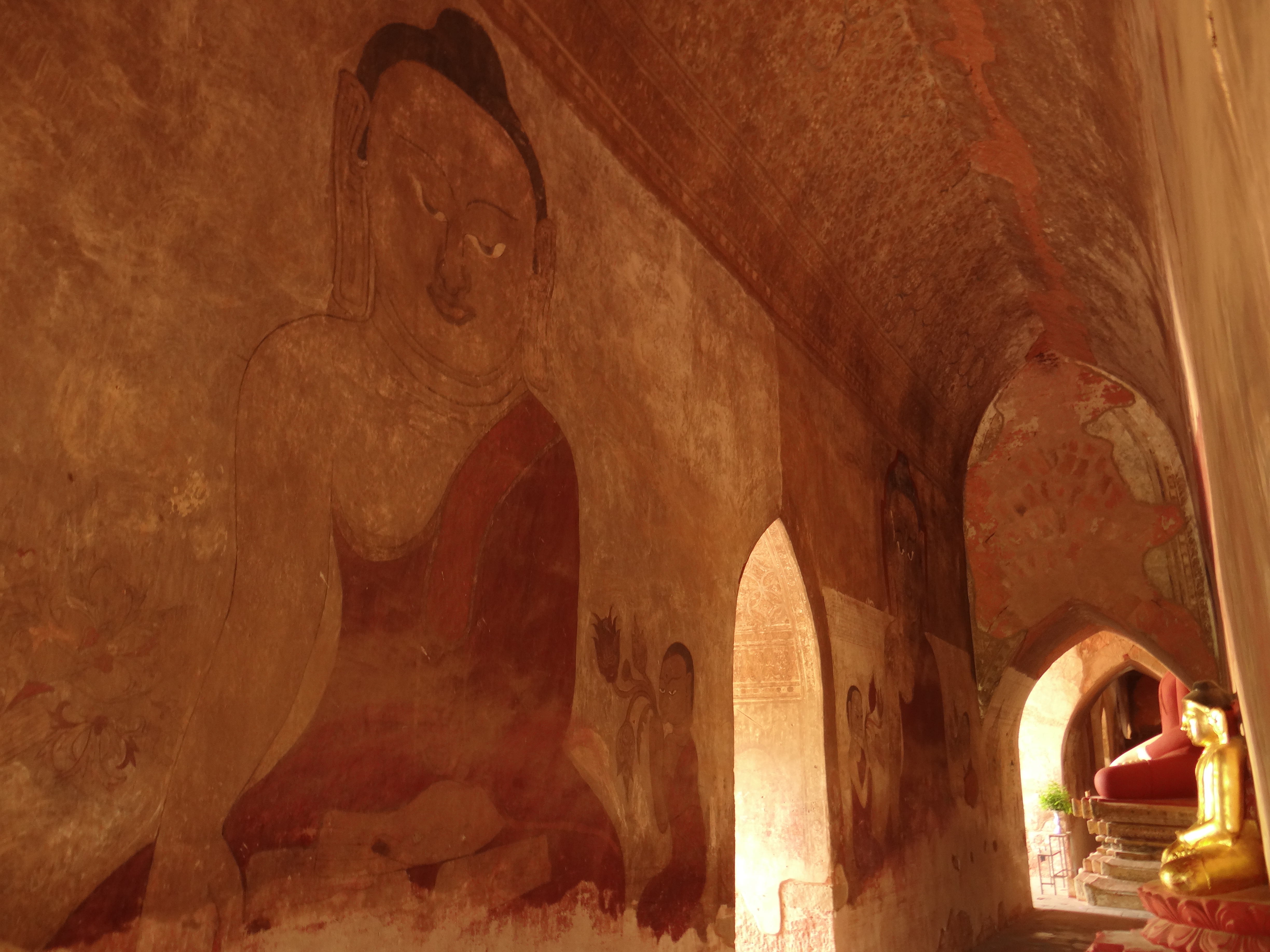 A quien le guste especialmente este tipo de pinturas que no deje de ir a otro templito escondido, el de Abeyadanar. Según sales de New Bagan por la carretera del norte a Old Bagan te encuentras con esta intersección
