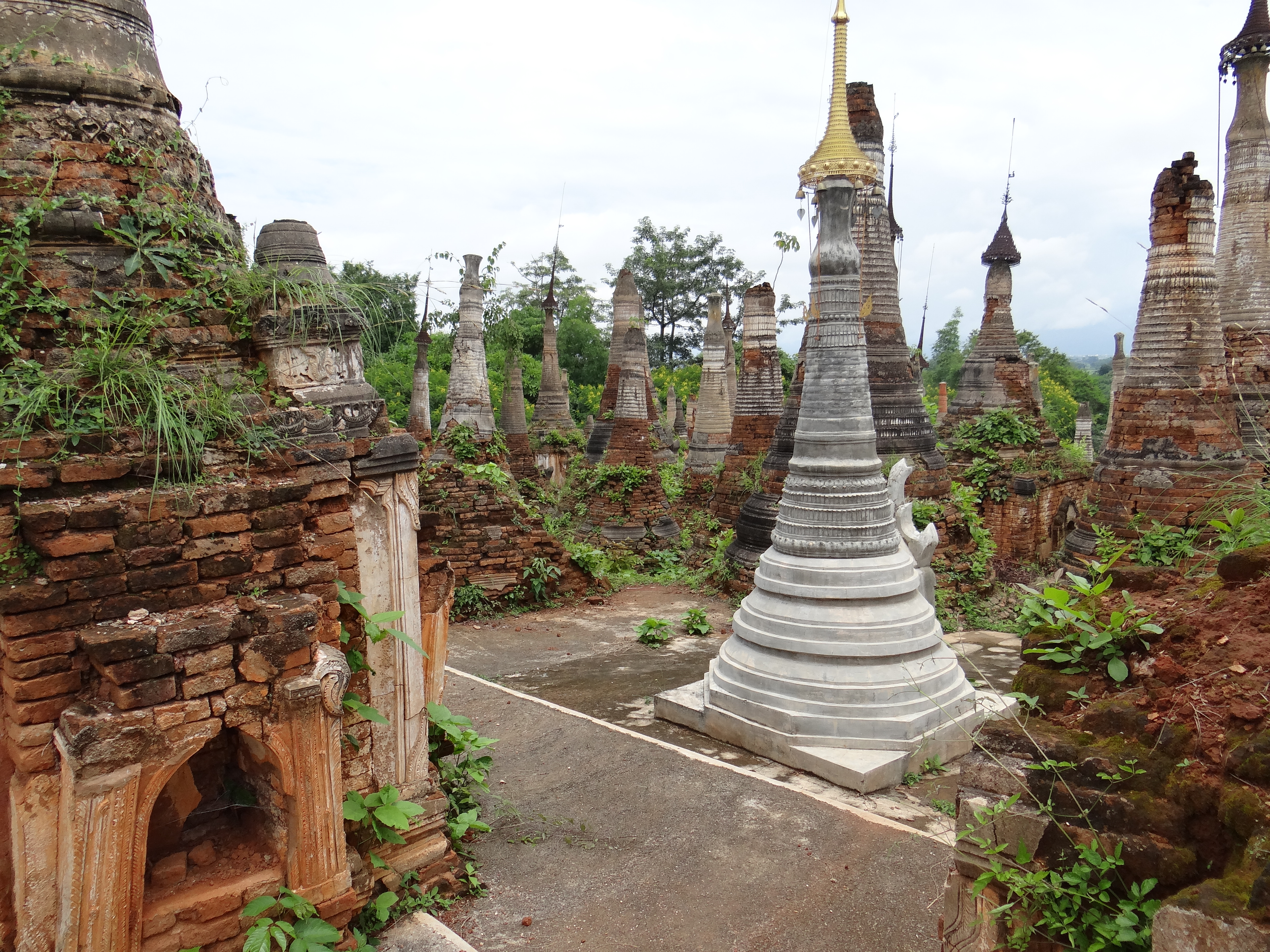 Si el lago Inle es tu primera parada en Myanmar puedes estrenarte contemplando tus primeras estupas en el Kyaukhpyugyi Paya, al sur del pueblo siguiendo un pequeño canal que baja.